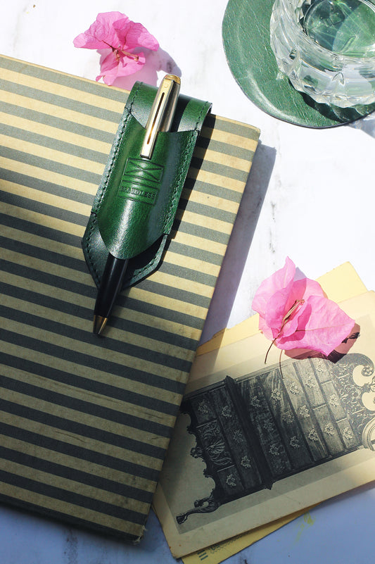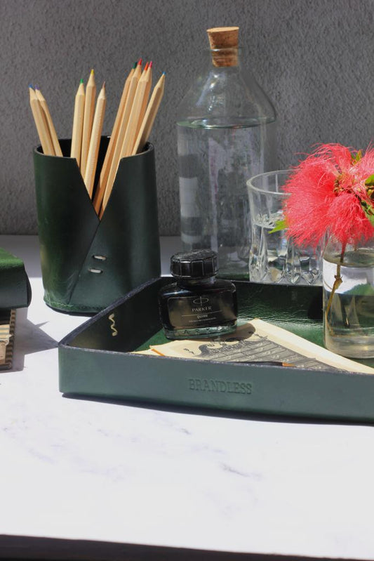 DRAFTER PEN STAND- DARK GREEN LEATHER